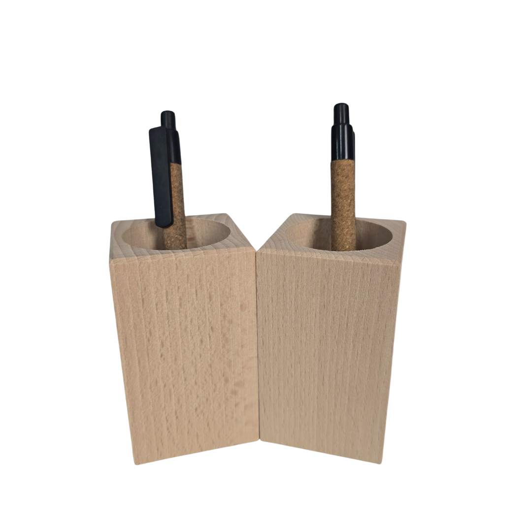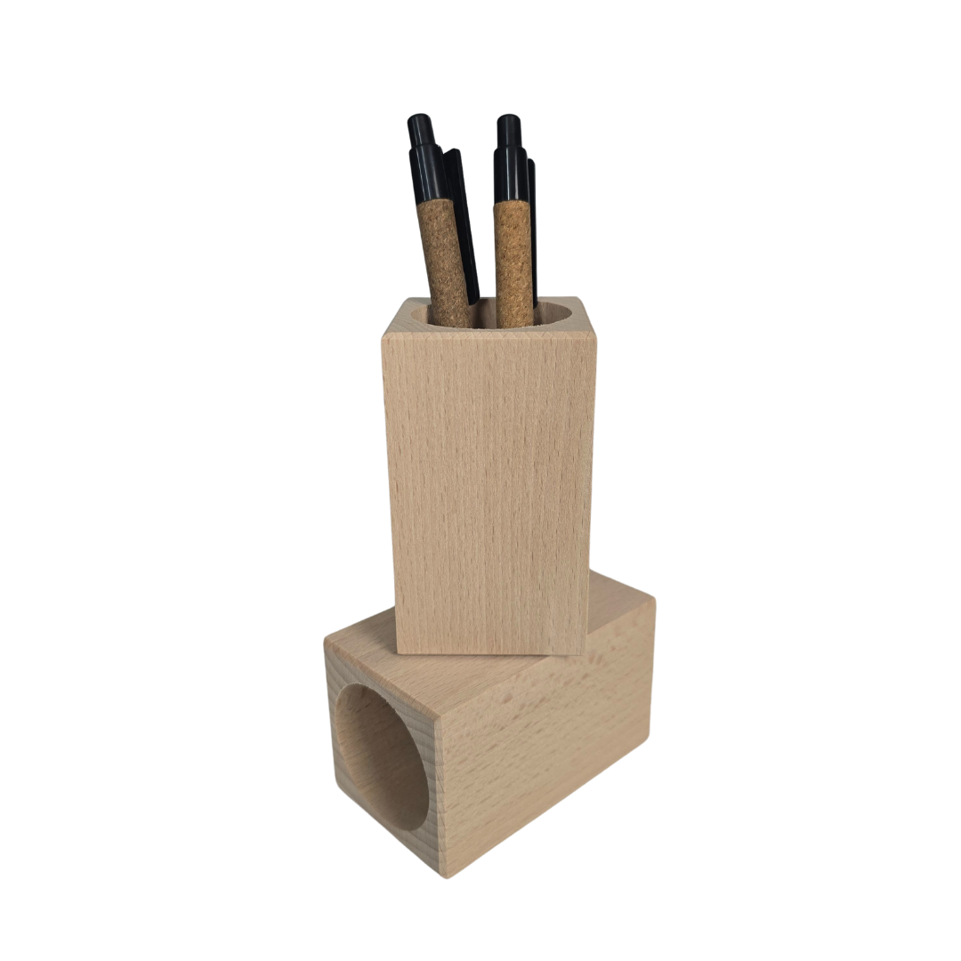 De (…) is een pennenhouder, gemaakt van duurzaam beukenhout. Het beukenhout heeft uitstekende bewerkingsmogelijkheden voor graveren, en een aantrekkelijke, lichte kleur die goed past in verschillende interieurstijlen. Door te kiezen voor duurzaam beukenhout draagt men bij aan de bescherming van het milieu. De afmetingen zijn 9,5×5,5cm.