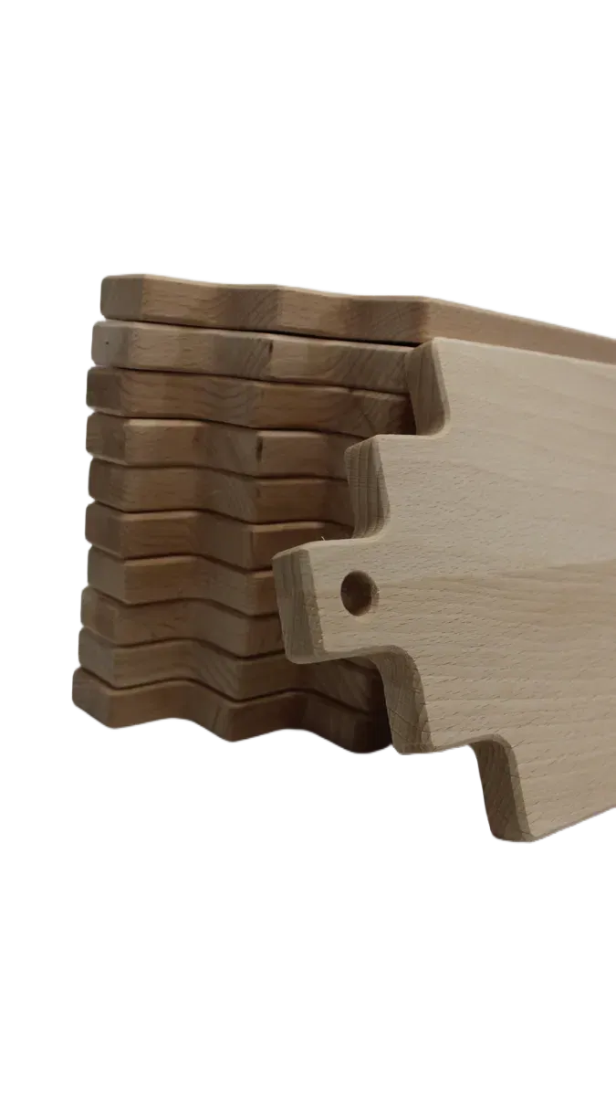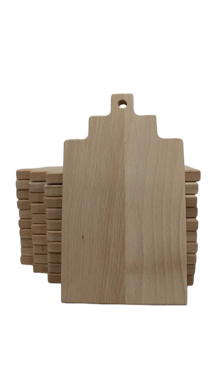 De Amsterdam 811 is een mooie snij- en borrelplank in de vorm van een huisje met trapgevel, gemaakt van duurzaam beukenhout. Het beukenhout heeft uitstekende bewerkingsmogelijkheden voor graveren, en een aantrekkelijke, lichte kleur die goed past in verschillende interieurstijlen. Door te kiezen voor duurzaam beukenhout draagt men bij aan de bescherming van het milieu. In het handvat is ruimte voor een koordje (niet inbegrepen), zo kun je de plank ook ophangen. De Amsterdam 811 is iets dikker dan de Amsterdam 810.