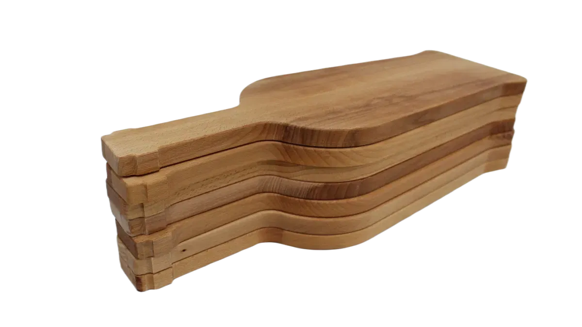 De Guardamar 900 is een unieke snij- en borrelplank in de vorm van een wijnfles, gemaakt van duurzaam beukenhout. Het beukenhout heeft uitstekende bewerkingsmogelijkheden voor graveren, en een aantrekkelijke, lichte kleur die goed past in verschillende interieurstijlen. Door te kiezen voor duurzaam beukenhout draagt men bij aan de bescherming van het milieu. De Guardamar 900 is grotere versie van dan de Guardamar 901.